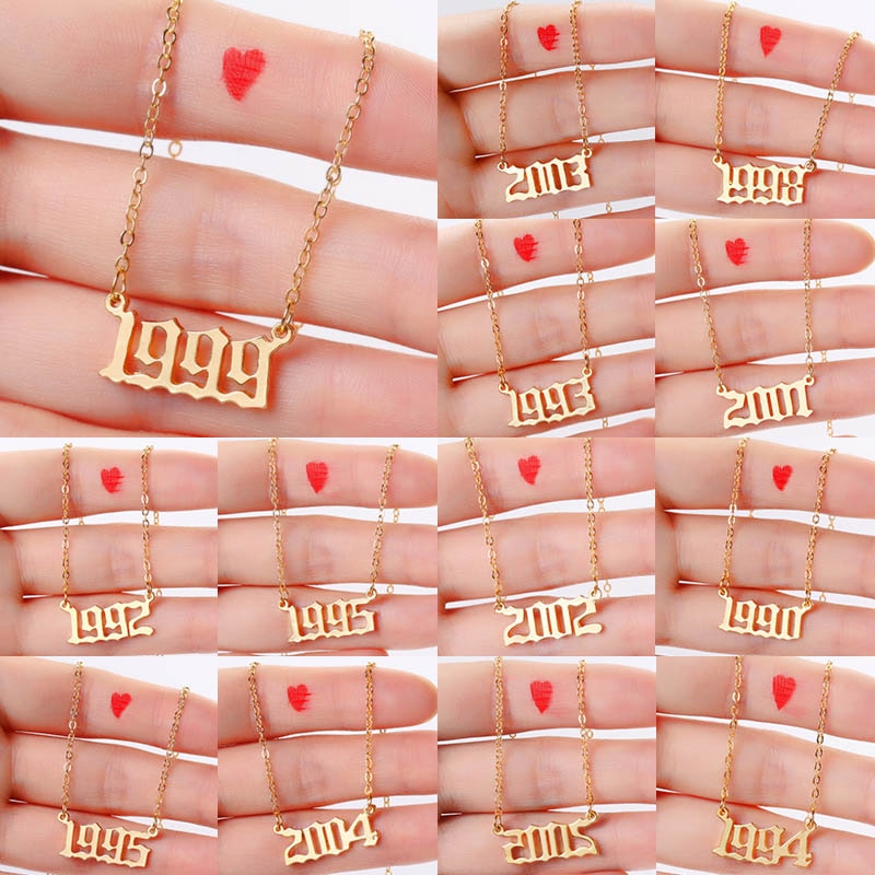 Bohemian English Number Letter Necklace Stainless Steel Chain Necklace for Women Birthday Gift Female Birth Year Necklaces