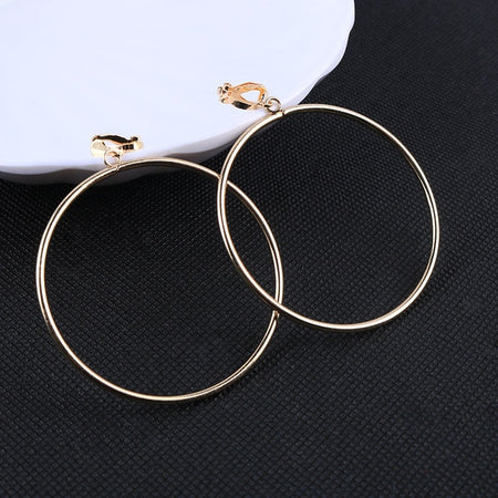 Classic Geometric Round Clip on Earrings No Pierced Ear Clip Metal Simple Big Earring for Women Party Minimalist Fashion Jewelry