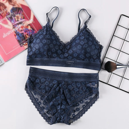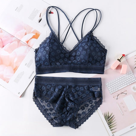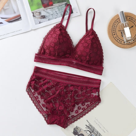 Women Lace Sets Sports Bra Ultrathin Panties Beauty Back Wrapped Chest Brassiere Lingerie Stretch Triangle Cup Padded Underwear